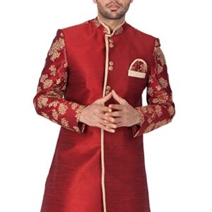Vastramay Men’s Maroon n Gold Cotton Silk Blend Sherwani Only Top